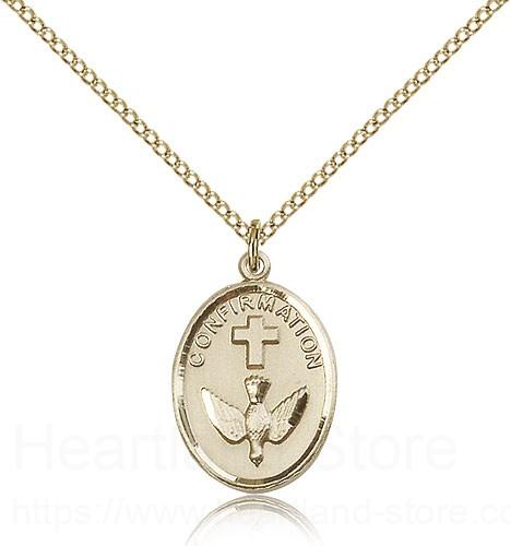 This Confirmation Medal is paired with an 18" gold filled light curb chain as pictured. All medals are gift boxed in a light blue velvet gift box ready for gift giving.