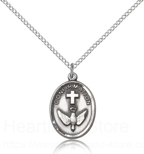 This Confirmation Medal is paired with an 18 inch sterling silver lite curb chain as pictured. All medals are gift boxed in a light blue velvet jewelry box ready for gift giving.