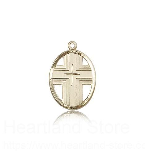 This Cross Pendant is made of 14 Karat Gold. The jewelry pendant is sold as pictured and does not come with a chain. All medals are gift boxed in a light blue velvet jewelry box ready for gift giving.