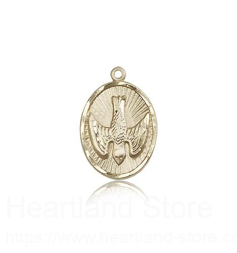 This Holy Spirit Medal is made of 14 Karat Gold. The jewelry pendant is sold as pictured and does not come with a chain. All medals are gift boxed in a light blue velvet jewelry box ready for gift giving.