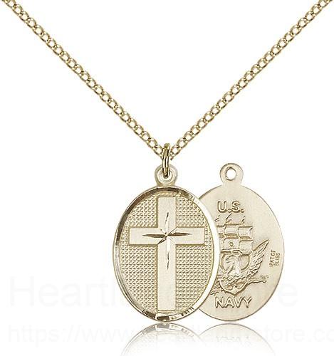 This Cross Navy Medal is paired with an 18" gold filled light curb chain as pictured. All medals are gift boxed in a light blue velvet gift box ready for gift giving.
