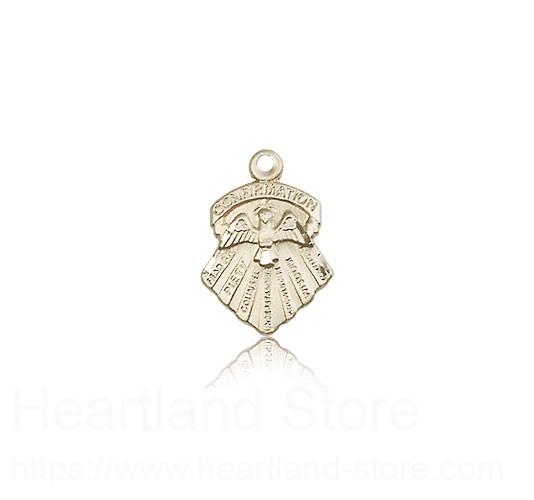 This Seven Gifts Medal is made of 14 Karat Gold. The jewelry pendant is sold as pictured and does not come with a chain. All medals are gift boxed in a light blue velvet jewelry box ready for gift giving.