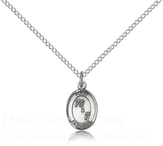 This First Penance Medal is paired with an 18 inch sterling silver lite curb chain as pictured. All medals are gift boxed in a light blue velvet jewelry box ready for gift giving.
