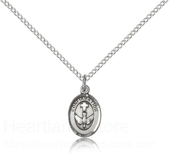 This Confirmation Medal is paired with an 18 inch sterling silver lite curb chain as pictured. All medals are gift boxed in a light blue velvet jewelry box ready for gift giving.