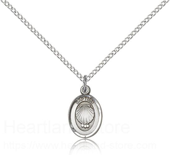This Baptism Medal is paired with an 18 inch sterling silver lite curb chain as pictured. All medals are gift boxed in a light blue velvet jewelry box ready for gift giving.