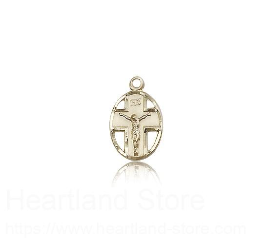 This Crucifix Pendant is made of 14 Karat Gold. The jewelry pendant is sold as pictured and does not come with a chain. All medals are gift boxed in a light blue velvet jewelry box ready for gift giving.