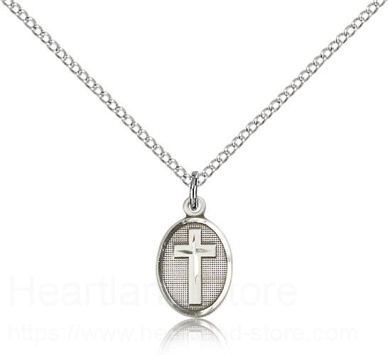 This Cross Pendant is paired with an 18 inch sterling silver lite curb chain as pictured. All medals are gift boxed in a light blue velvet jewelry box ready for gift giving.