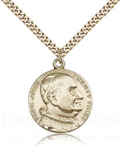 This St. Pope John Xxii Medal is paired with a 24 inch stainless steel gold-tone heavy curb chain as pictured. All medals are gift boxed in a light blue velvet jewelry box ready for gift giving.