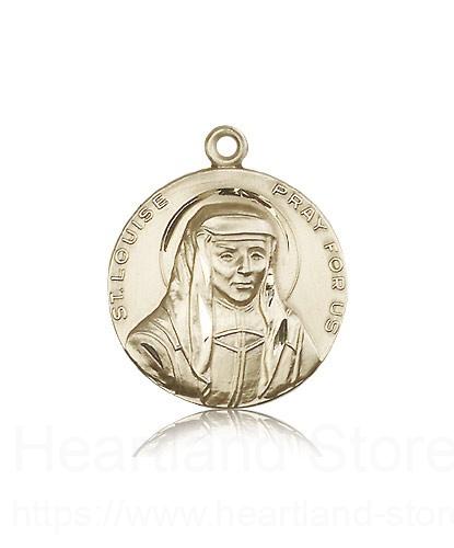 This St. Louise Medal is made of 14 Karat Gold. The jewelry pendant is sold as pictured and does not come with a chain. All medals are gift boxed in a light blue velvet jewelry box ready for gift giving.