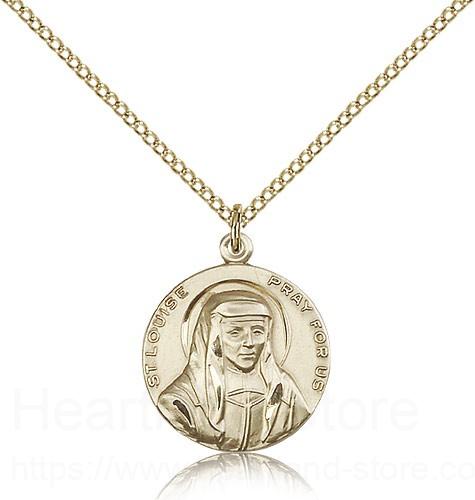 This St. Louise Medal is paired with an 18" gold filled light curb chain as pictured. All medals are gift boxed in a light blue velvet gift box ready for gift giving.