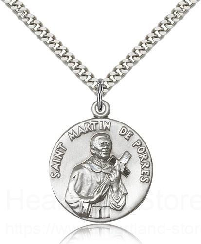 This St. Martin De Porres Medal is paired with a 24 inch stainless steel heavy curb chain as pictured. All medals are gift boxed in a light blue velvet jewelry box ready for gift giving.
