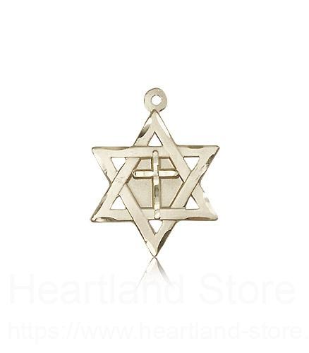 This Star of David with Cross Pendant is made of 14 Karat Gold. The jewelry pendant is sold as pictured and does not come with a chain. All medals are gift boxed in a light blue velvet jewelry box ready for gift giving.