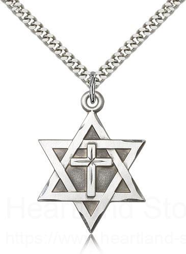 This large Star of David with Cross Pendant is made of sterling silver and is 1ΒΌ" high.