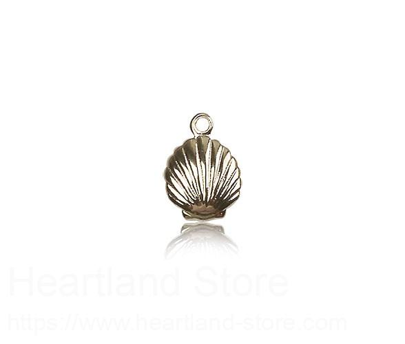 This Shell Medal is made of 14 Karat Gold. The jewelry pendant is sold as pictured and does not come with a chain. All medals are gift boxed in a light blue velvet jewelry box ready for gift giving.