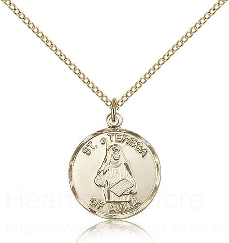 This St. Theresa Medal is paired with an 18" gold filled light curb chain as pictured. All medals are gift boxed in a light blue velvet gift box ready for gift giving.