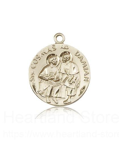 About this Sts. Cosmos and Damian Medal, 14 Karat Gold