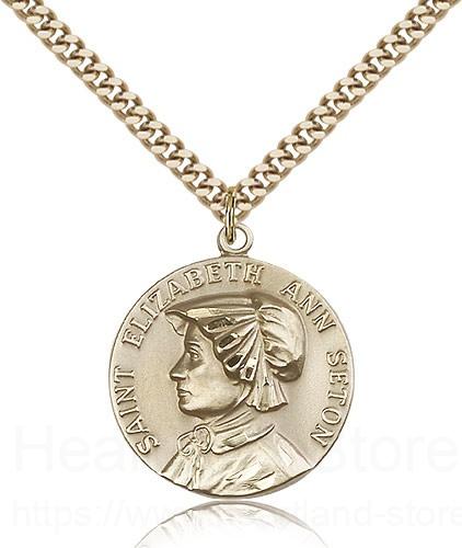 This St. Ann Medal is paired with a 24 inch stainless steel gold-tone heavy curb chain as pictured. All medals are gift boxed in a light blue velvet jewelry box ready for gift giving.