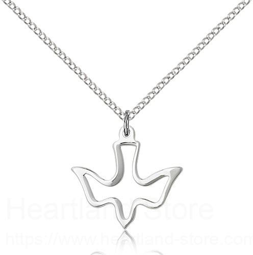This Holy Spirit Medal is paired with an 18 inch sterling silver lite curb chain as pictured. All medals are gift boxed in a light blue velvet jewelry box ready for gift giving.