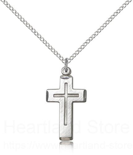 This Cross Pendant is paired with an 18 inch sterling silver lite curb chain as pictured. All medals are gift boxed in a light blue velvet jewelry box ready for gift giving.
