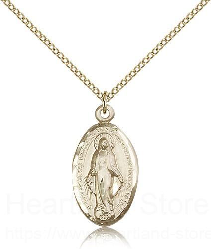 This Miraculous Medal is paired with an 18" gold filled light curb chain as pictured. All medals are gift boxed in a light blue velvet gift box ready for gift giving.