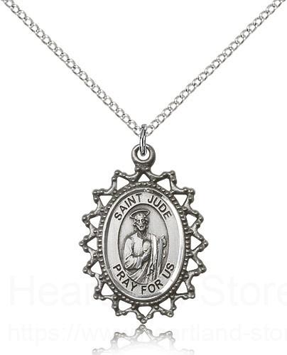 This St. Jude Medal is paired with an 18 inch sterling silver lite curb chain as pictured. All medals are gift boxed in a light blue velvet jewelry box ready for gift giving.