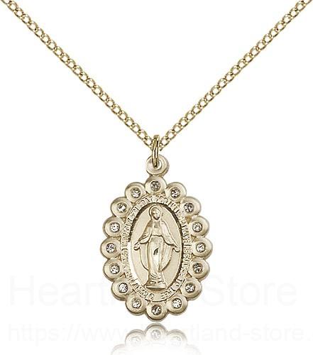 This Miraculous Medal is paired with an 18" gold filled light curb chain as pictured. All medals are gift boxed in a light blue velvet gift box ready for gift giving.