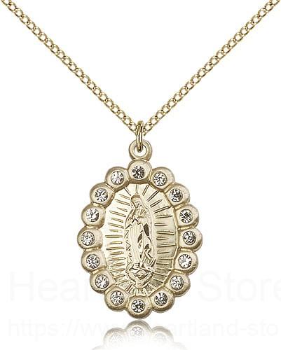 This Our Lady of Guadalupe Medal is paired with an 18" gold filled light curb chain as pictured. All medals are gift boxed in a light blue velvet gift box ready for gift giving.
