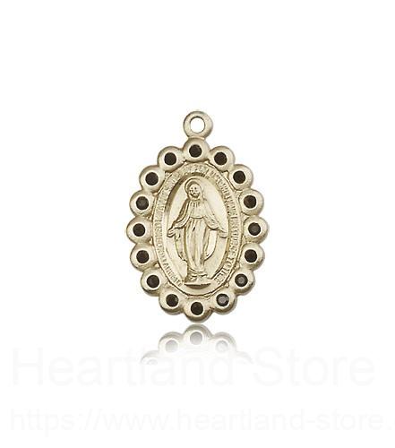 This Miraculous Medal is made of 14 Karat Gold. The jewelry pendant is sold as pictured and does not come with a chain. All medals are gift boxed in a light blue velvet jewelry box ready for gift giving.