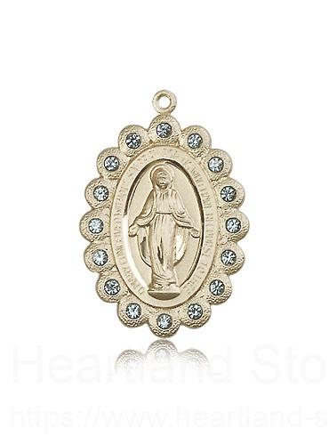 This Miraculous Medal is made of 14 Karat Gold. The jewelry pendant is sold as pictured and does not come with a chain. All medals are gift boxed in a light blue velvet jewelry box ready for gift giving.