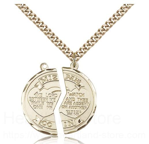 This Miz Pah Medal is made of 14 Karat Gold. The jewelry pendant is sold as pictured and does not come with a chain. All medals are gift boxed in a light blue velvet jewelry box ready for gift giving.