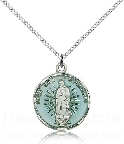 This Our Lady of Guadalupe Medal is paired with an 18 inch sterling silver lite curb chain as pictured. All medals are gift boxed in a light blue velvet jewelry box ready for gift giving.