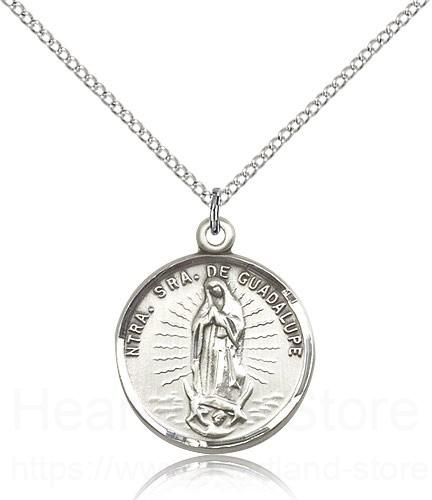 This Our Lady of Guadalupe Medal is paired with an 18 inch sterling silver lite curb chain as pictured. All medals are gift boxed in a light blue velvet jewelry box ready for gift giving.