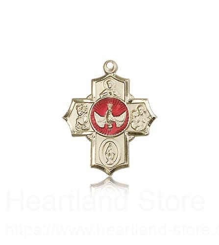 This 5 Way Cross Pendant is made of 14 Karat Gold. The jewelry pendant is sold as pictured and does not come with a chain. All medals are gift boxed in a light blue velvet jewelry box ready for gift giving.