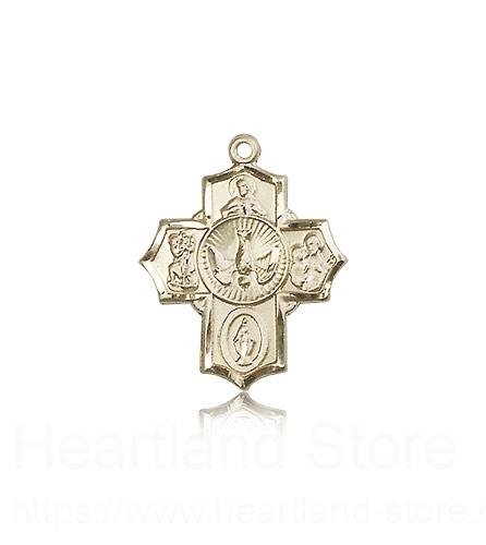 This 5 Way Cross Pendant is made of 14 Karat Gold. The jewelry pendant is sold as pictured and does not come with a chain. All medals are gift boxed in a light blue velvet jewelry box ready for gift giving.