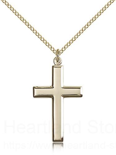 This Cross Pendant is paired with an 18" gold filled light curb chain as pictured. All medals are gift boxed in a light blue velvet gift box ready for gift giving.