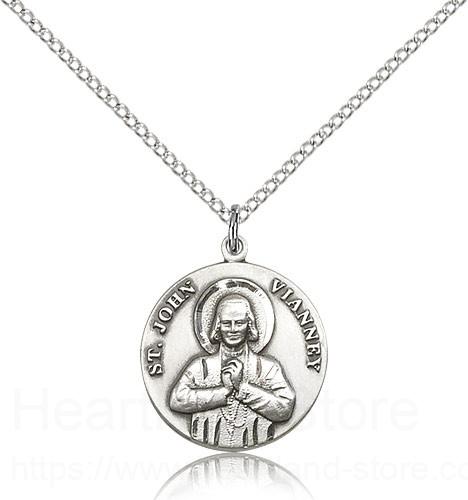 This St. John Vianney Medal is paired with an 18 inch sterling silver lite curb chain as pictured. All medals are gift boxed in a light blue velvet jewelry box ready for gift giving.