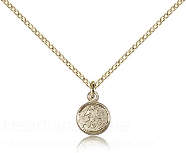 This Guardian Angel Medal is paired with an 18" gold filled light curb chain as pictured. All medals are gift boxed in a light blue velvet gift box ready for gift giving.