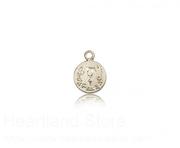 This Communion Medal is made of 14 Karat Gold. The jewelry pendant is sold as pictured and does not come with a chain. All medals are gift boxed in a light blue velvet jewelry box ready for gift giving.