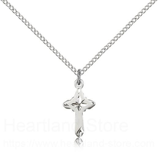 This Cross Pendant is paired with an 18 inch sterling silver lite curb chain as pictured. All medals are gift boxed in a light blue velvet jewelry box ready for gift giving.