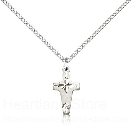 This Cross Pendant is paired with an 18 inch sterling silver lite curb chain as pictured. All medals are gift boxed in a light blue velvet jewelry box ready for gift giving.