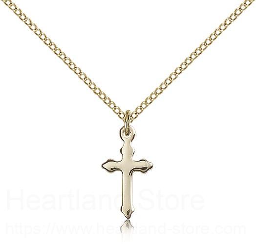 This Cross Pendant is paired with an 18" gold filled light curb chain as pictured. All medals are gift boxed in a light blue velvet gift box ready for gift giving.
