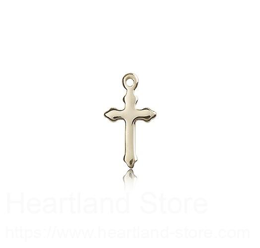 This Cross Pendant is made of 14 Karat Gold. The jewelry pendant is sold as pictured and does not come with a chain. All medals are gift boxed in a light blue velvet jewelry box ready for gift giving.