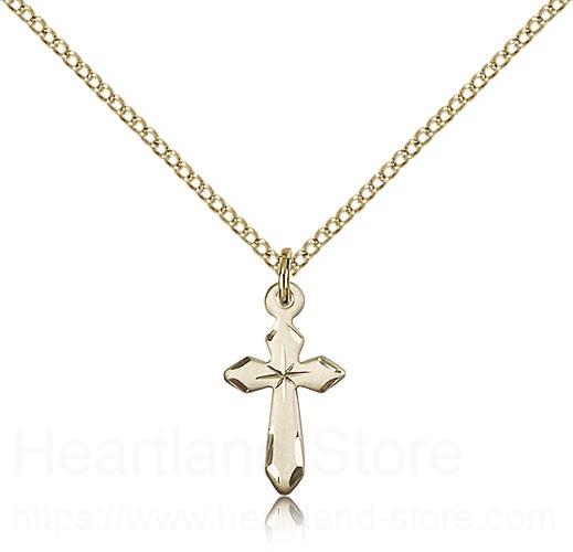 This Cross Pendant is paired with an 18" gold filled light curb chain as pictured. All medals are gift boxed in a light blue velvet gift box ready for gift giving.