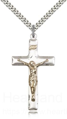 This Crucifix Pendant is paired with a 24 inch stainless steel heavy curb chain as pictured. All medals are gift boxed in a light blue velvet jewelry box ready for gift giving.