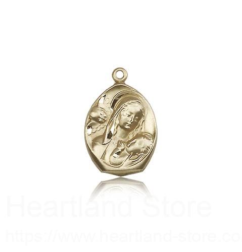 This Madonna and Child Medal is made of 14 Karat Gold. The jewelry pendant is sold as pictured and does not come with a chain. All medals are gift boxed in a light blue velvet jewelry box ready for gift giving.