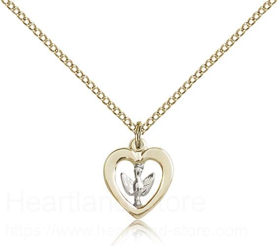 Holy Spirit Medal is paired with an 18" gold filled light curb chain as pictured. All medals are gift boxed in a light blue velvet gift box ready for gift giving.