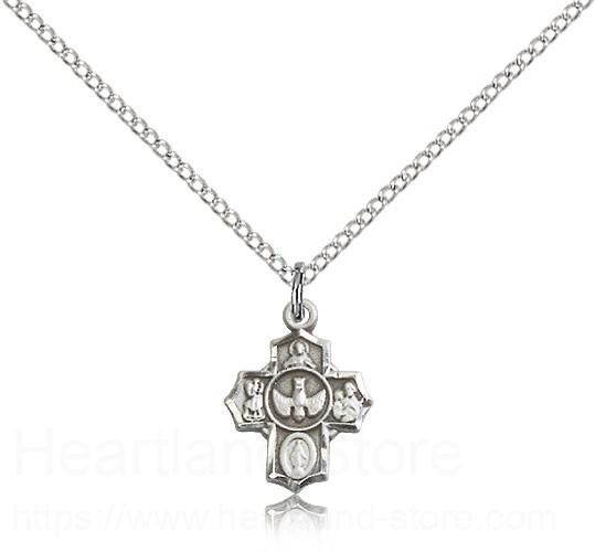 This 5 Way Cross Pendant is paired with an 18 inch sterling silver lite curb chain as pictured. All medals are gift boxed in a light blue velvet jewelry box ready for gift giving.