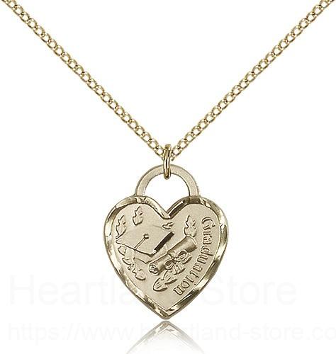 This Graduation Heart Medal is paired with an 18" gold filled light curb chain as pictured. All medals are gift boxed in a light blue velvet gift box ready for gift giving.