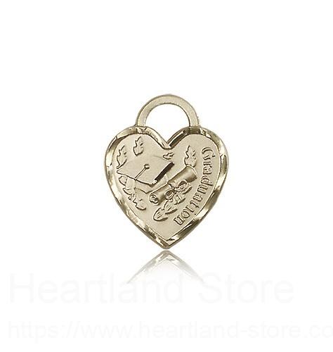 This Graduation Heart Medal is made of 14 Karat Gold. The jewelry pendant is sold as pictured and does not come with a chain. All medals are gift boxed in a light blue velvet jewelry box ready for gift giving.
