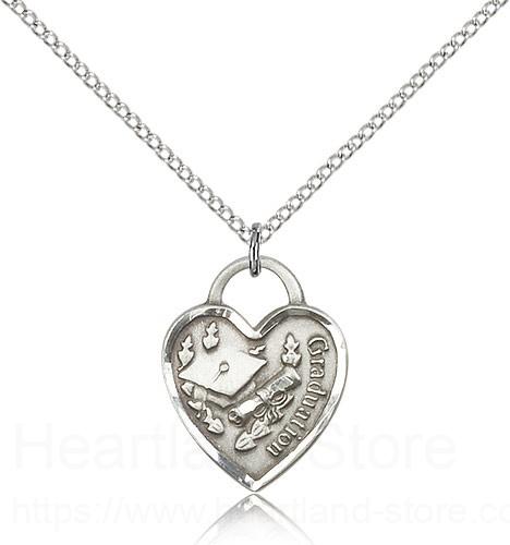 This Graduation Heart Medal is paired with an 18 inch sterling silver lite curb chain as pictured. All medals are gift boxed in a light blue velvet jewelry box ready for gift giving.